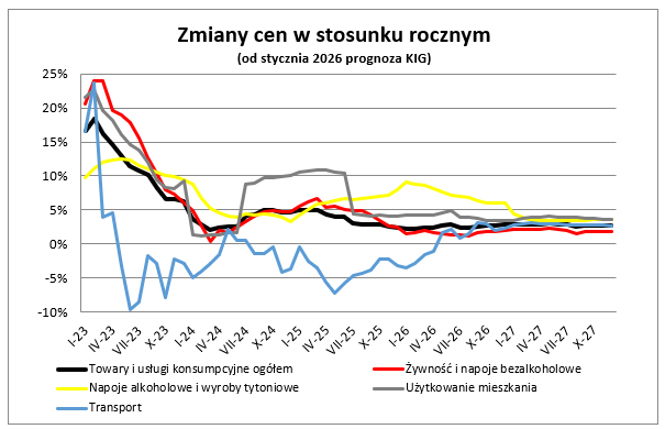 „Grudniowe dane pokazują, że inflacja zaczyna się stabilizować. Ceny niektórych produktów rosną wolniej, a inne nawet tanieją, co daje nadzieję na spokojniejszy start 2026 roku dla konsumentów i firm. Jednocześnie wciąż widać presję cenową w sektorze usług oraz w przypadku żywności i wyrobów tytoniowych, co oznacza, że inflacja pozostaje nierównomierna i będzie wymagać dalszego monitorowania w nadchodzących miesiącach” – mówi Piotr Soroczyński, główny ekonomista KIG.
