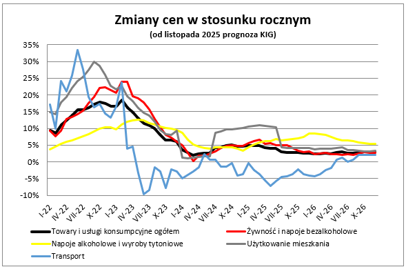 „Październikowe dane wskazują na kontynuację procesu stopniowego wyhamowywania inflacji, mimo że w części kategorii koszty wciąż rosną. Utrzymanie wskaźnika poniżej rynkowych oczekiwań to dobry sygnał zarówno dla gospodarstw domowych, jak i przedsiębiorstw. W kolejnych miesiącach kluczowe będzie to, czy presja kosztowa w usługach zacznie się obniżać i czy popyt pozostanie na stabilnym poziomie” – mówi Piotr Soroczyński, główny ekonomista KIG.