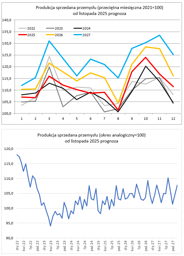 • W okresie I-X 2025 roku produkcja sprzedana przemysłu wzrosła o 2,8% r/r.
