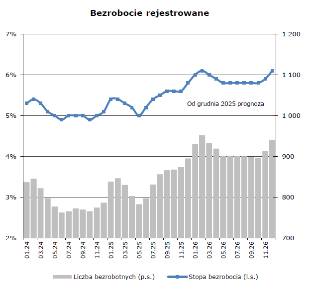 Jednocześnie liczba pracujących pozostaje wyższa niż przed rokiem, co potwierdza, że rynek pracy wciąż wykazuje odporność. W nadchodzących miesiącach bezrobocie może jeszcze przejściowo wzrosnąć, osiągając lokalne maksimum zimą, jednak wraz z nadejściem wiosny sytuacja powinna się stopniowo poprawiać.